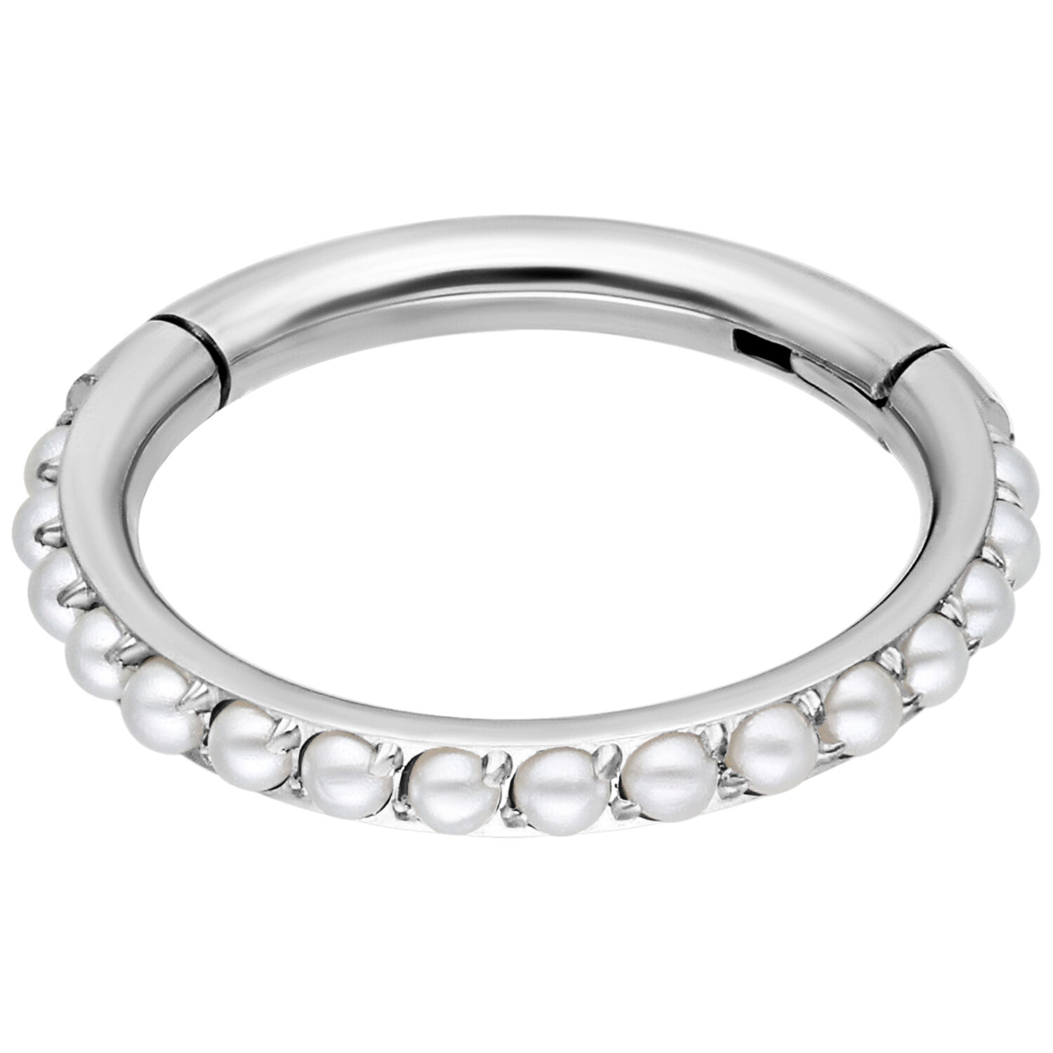 The elegant Pearl Clicker combines minimalist design with classic beauty. The delicately arranged pearls give the clicker a refined and harmonious appearance, adding a stylish accent to your piercing.