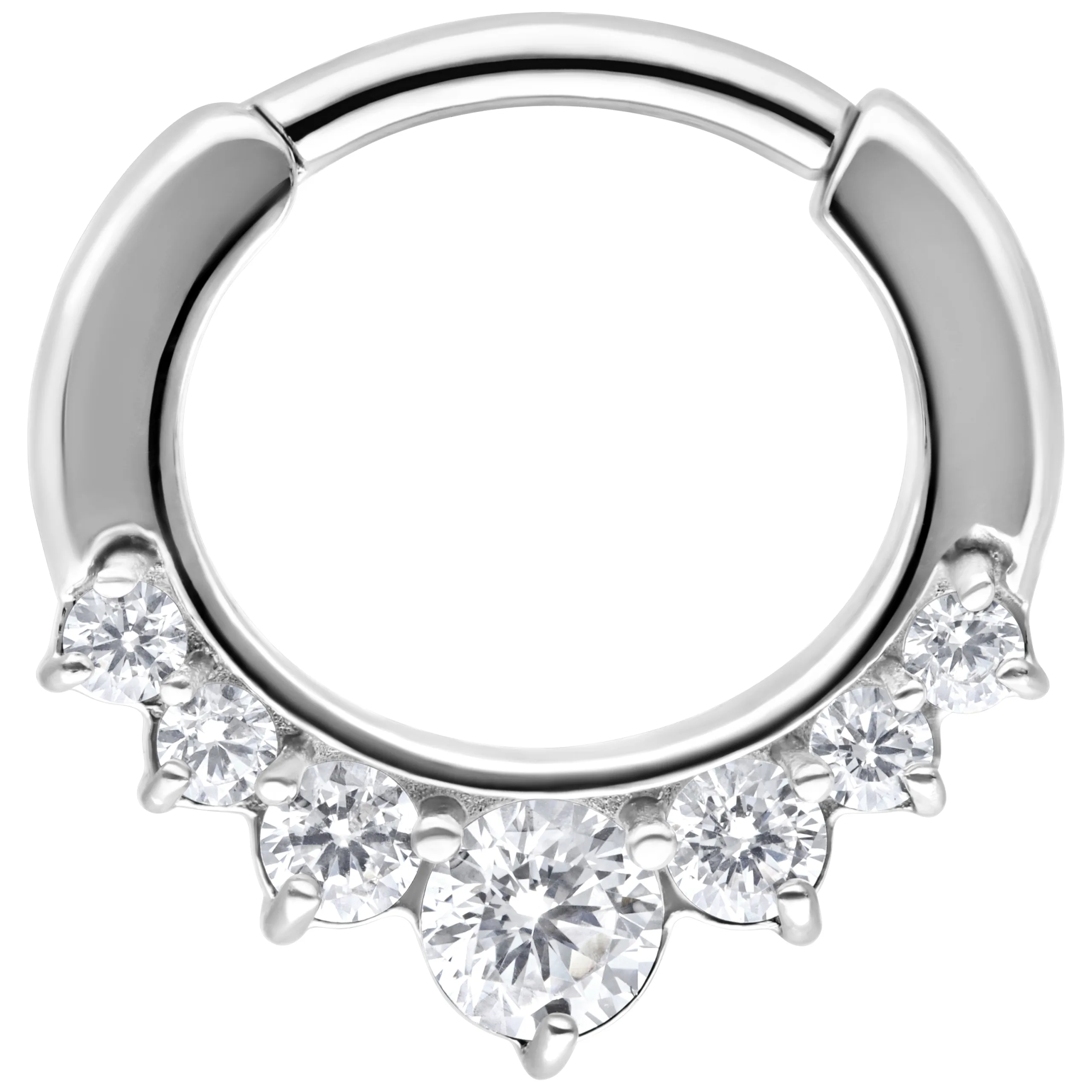 This high-quality Sparkling Septum Clicker made of silver stainless steel is particularly striking because of its beautiful zirconia stones that make you shine even from a distance. The segment ring has a hinge closure that makes it easy to insert the piercing. The piercing is especially suitable for your septum piercing, but can also be worn on the ear or on the lip band (smiley).