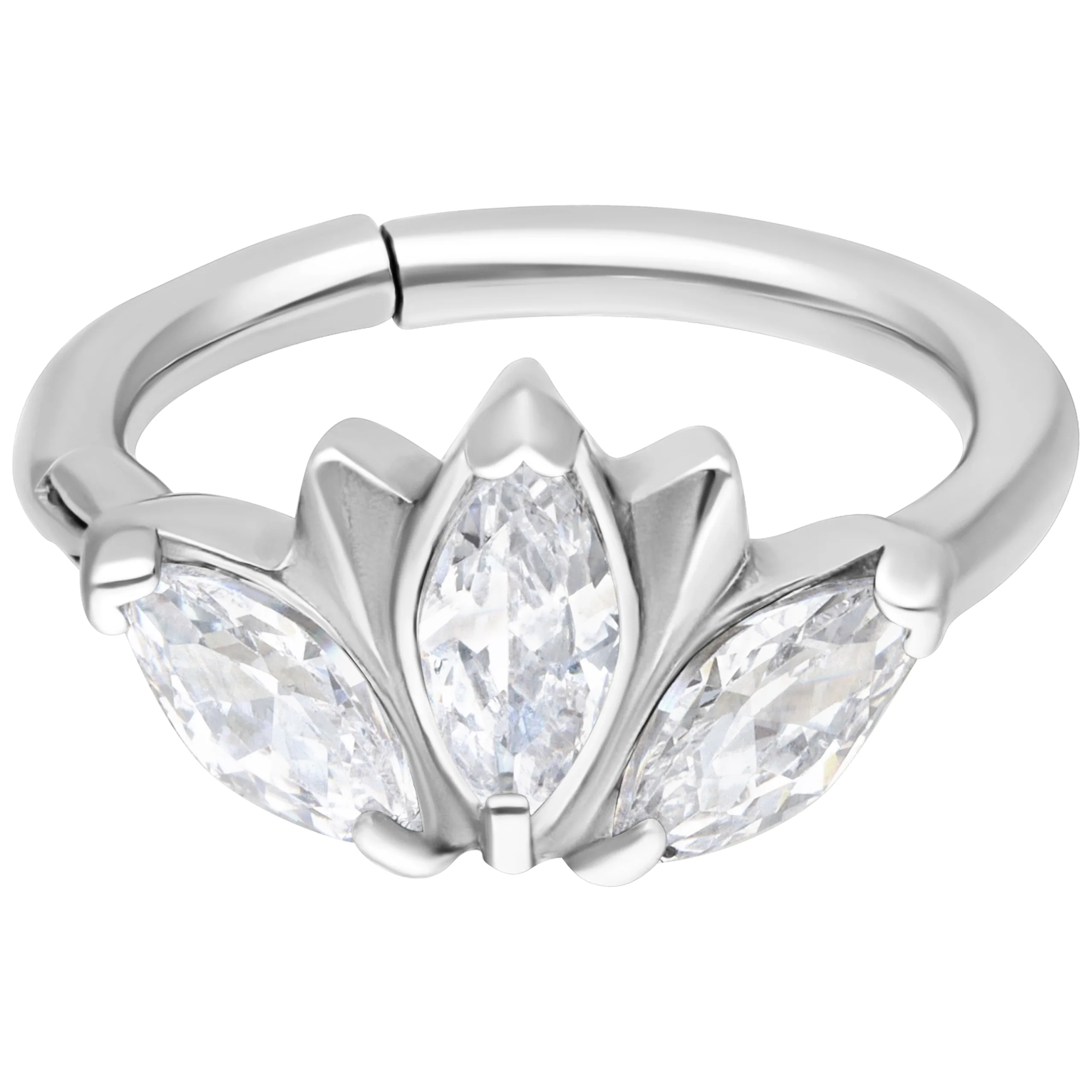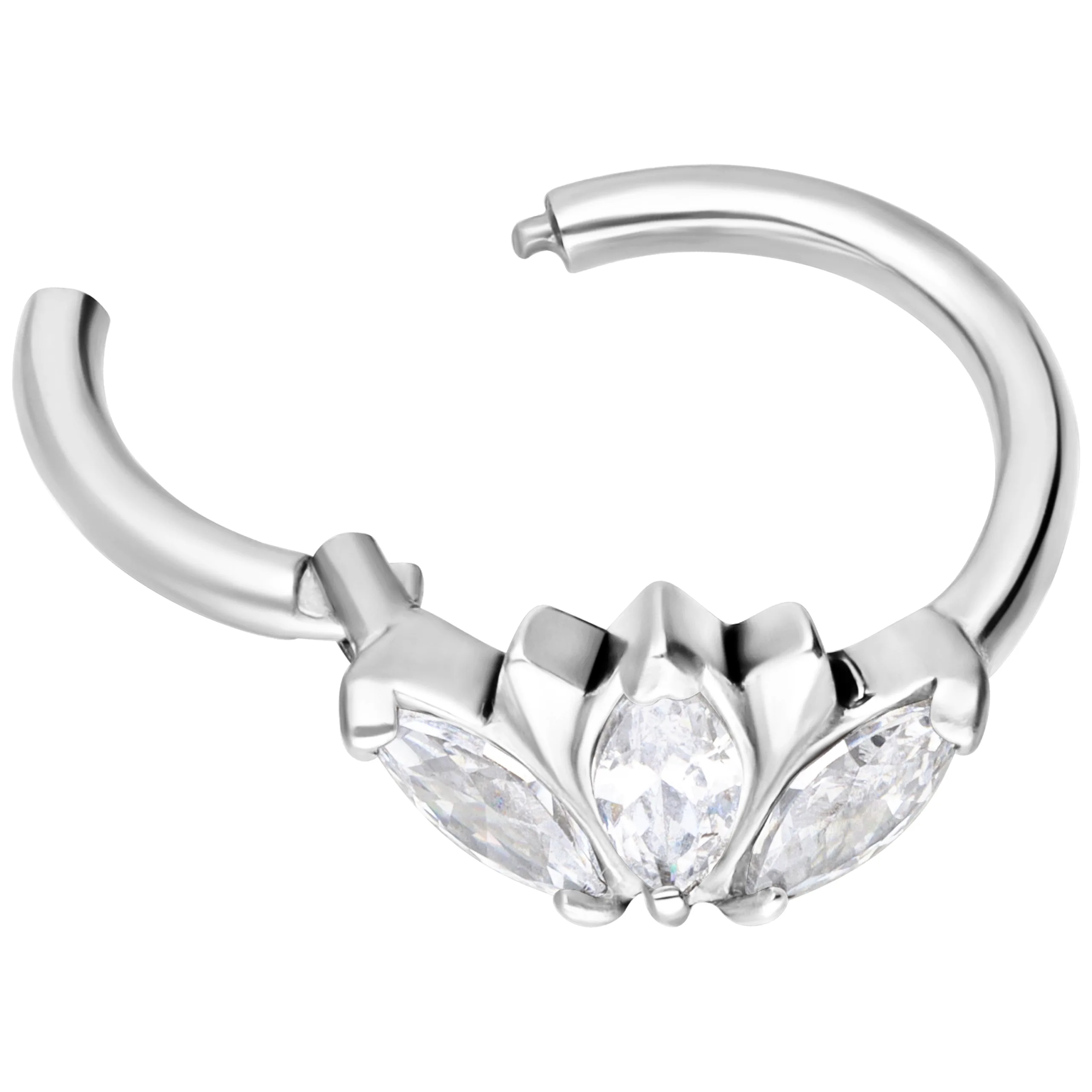 This high-quality shining ring stands out particularly by its three special oval Zirkonia crystals, which make you radiate already from a distance. Let your creativity run free, because you can use this ring as well as for every piercing on the ear. It is particularly suitable for your Helixpiercing. Due to its hinged closure, it is super easy to exchange your piercing without help.