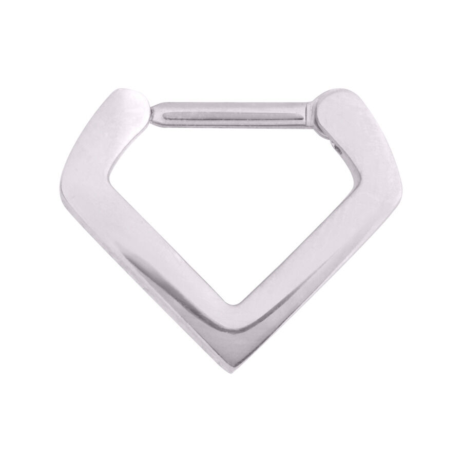 Unser Triangle Septum Clicker kommt wie der Name bereits verrät in cooler Dreiecksform daher. Das einzigartige Septumpiercing kann durch seinen Klick-Verschluss super leicht geöffnet und eingesetzt werden. Es kann zudem an verschiedenen Piercingstellen getragen werden, wie z.B. Septum und Daith. Die Stablänge des Piercings beträgt 7.0 mm. Der vertikale Innendurchmesser (der Abstand zwischen Steg und innerer unterer Spitze) beträgt 8.0 mm und der horizontale Innendurchmesser beträgt 10.0 mm. Das Piercing ist zudem aus hochwertigem Edelstahl hergestellt.