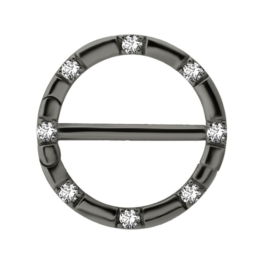 Das Piercing ist Teil unserer Steel Blackline Kollektion und besteht somit aus klassischem, schwarzem Edelstahl. Einen besonderen Eye-Catcher geben die runden, gefassten, Kristalle, die bei Lichteinfall wunderschön schimmern.