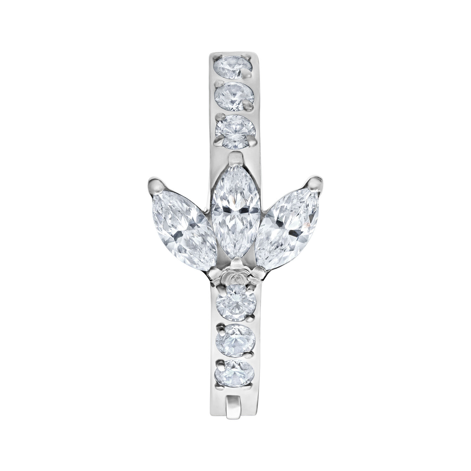 Boost your style factor and make your belly shine with our Lotus Crystal Belly Arch Clicker. An essential accessory for anyone who loves a touch of luxury and understated elegance. Give your look that certain something and attract everyone’s attention. The design measures approx. 7.0 x 15.0 mm with a bar length of 10.0 mm. It is available in silver, black, gold or rose titanium. The click mechanism ensures easy and skin-friendly application.