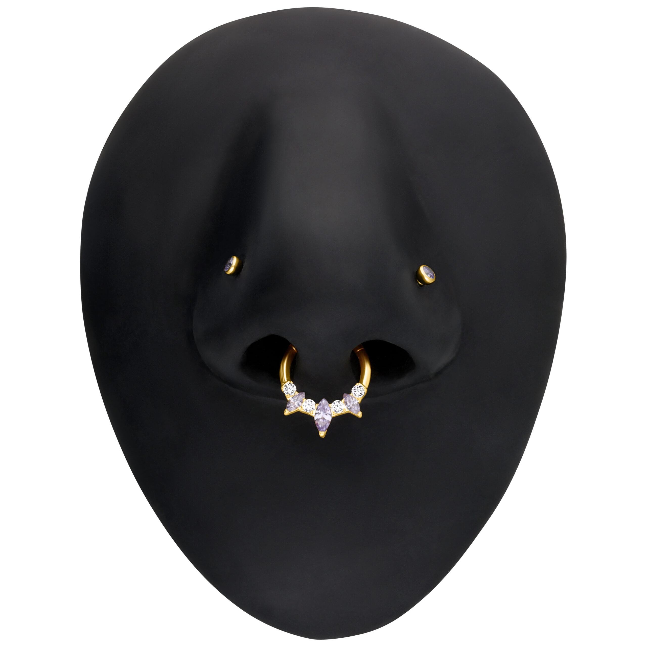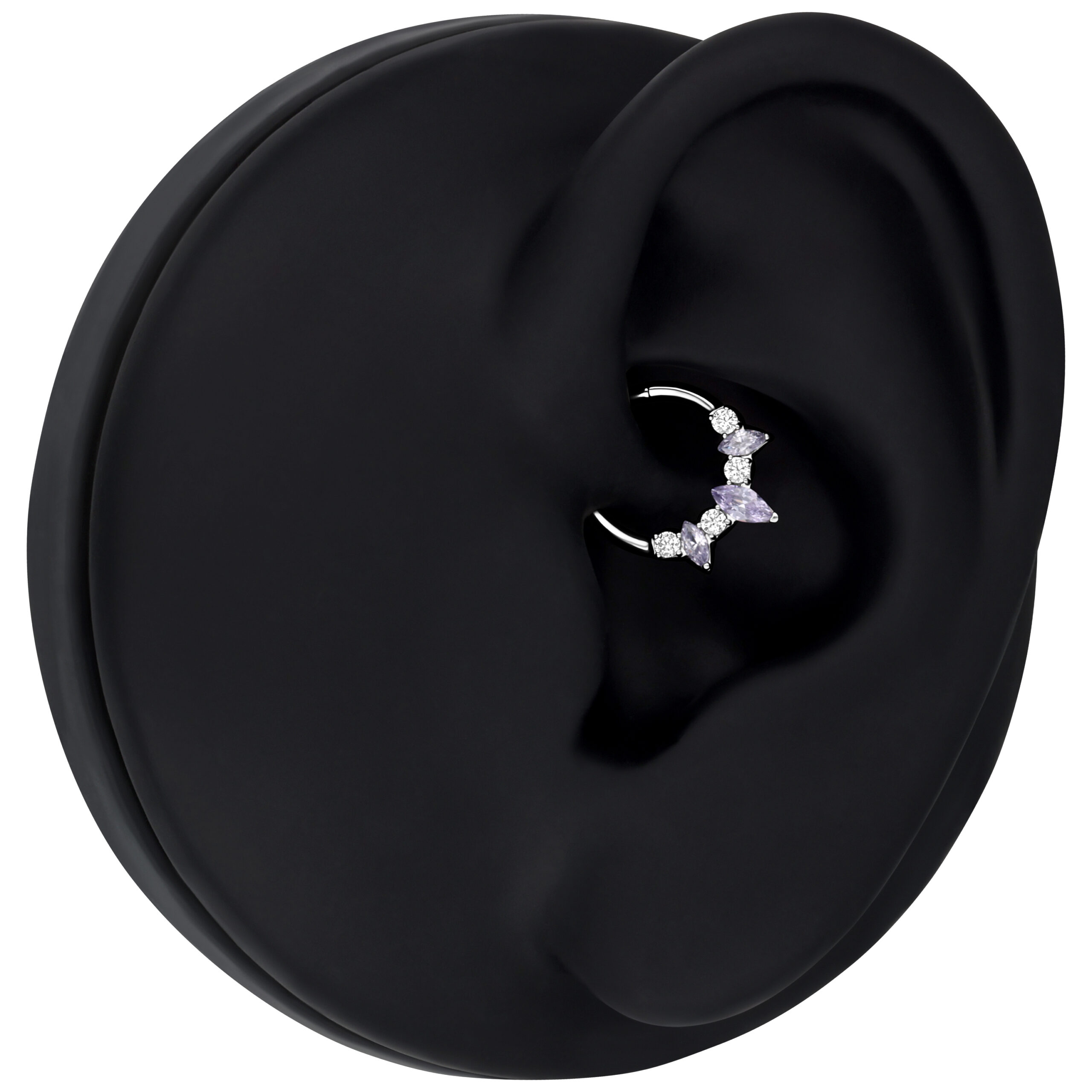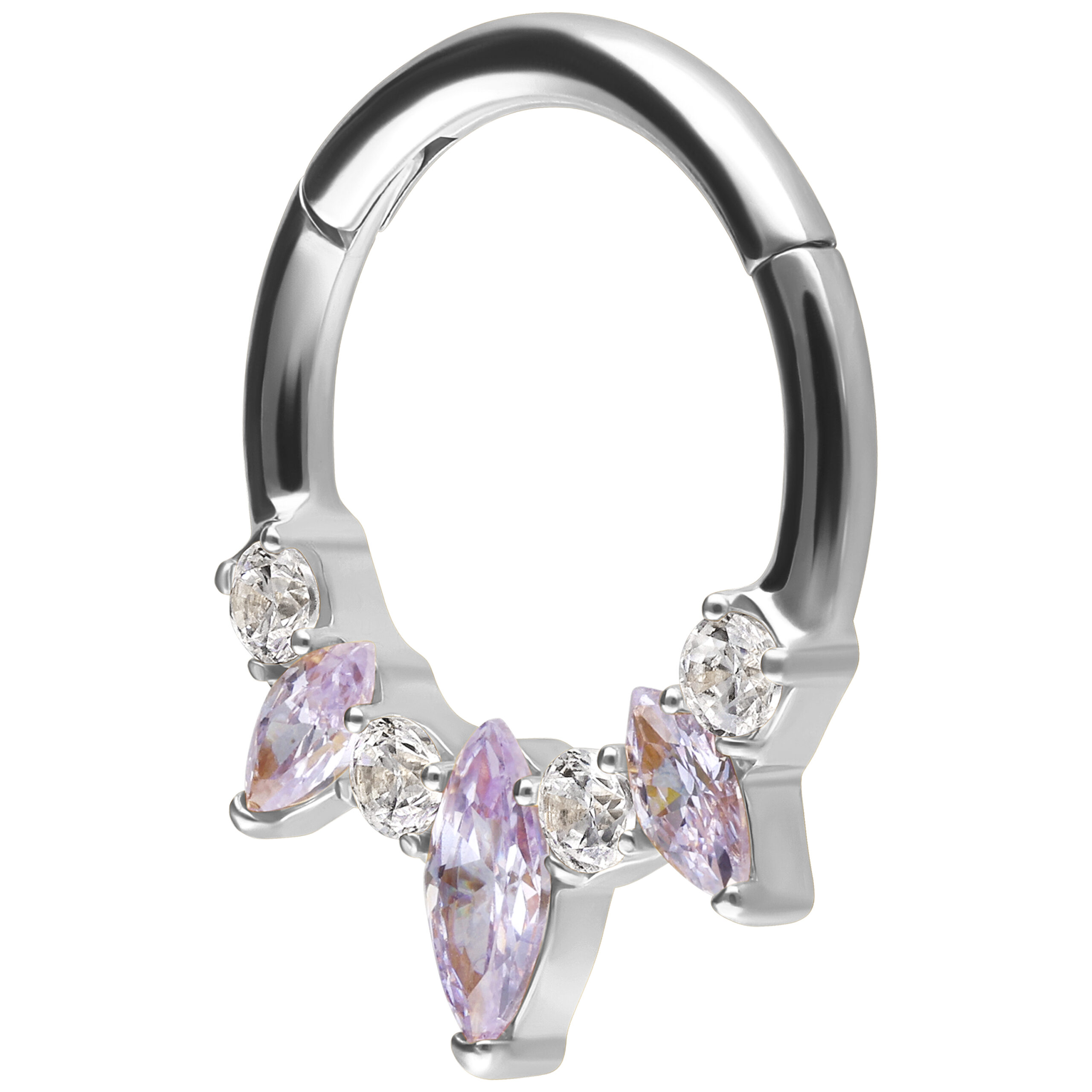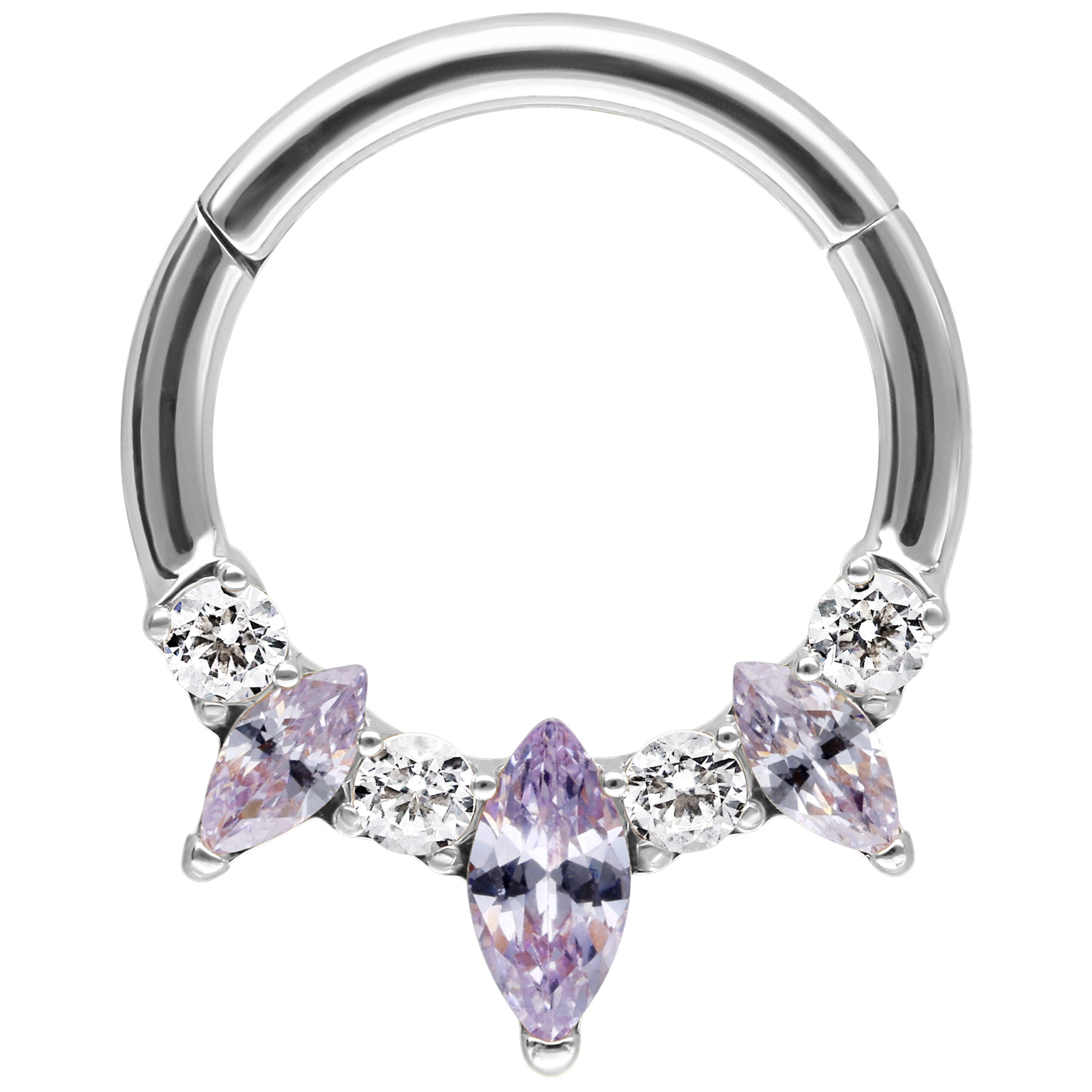Our Marquise Hinged Septum Clicker is made from high-quality stainless steel and is ideal for your septum or Daith piercing. The piercing features a curved hinge bar, allowing for easy handling when inserting the piercing – all without any help.