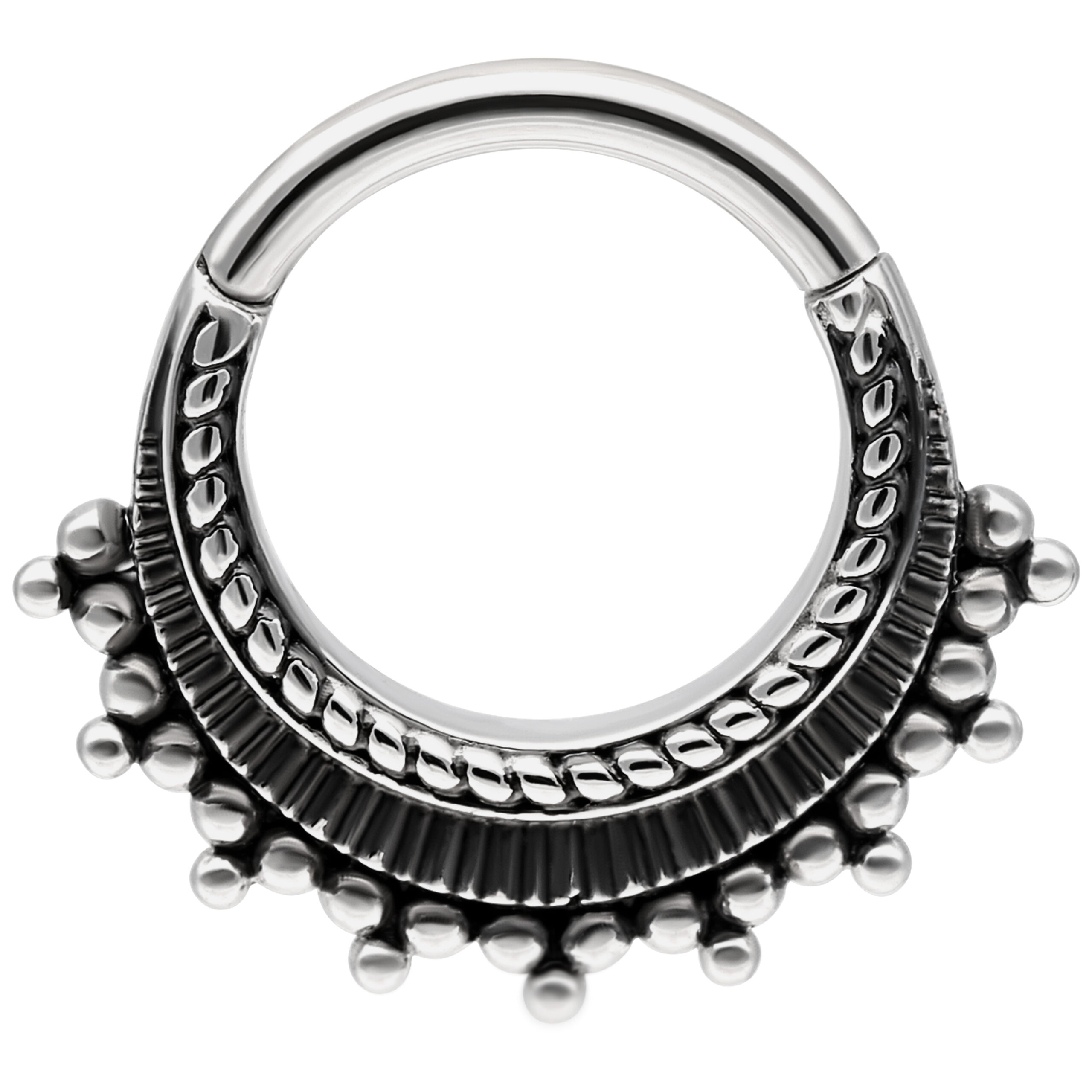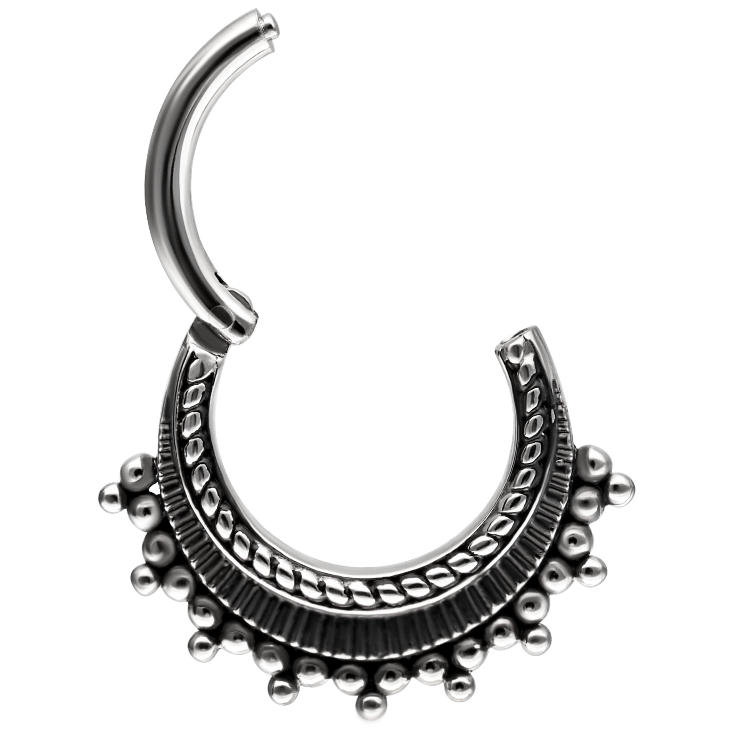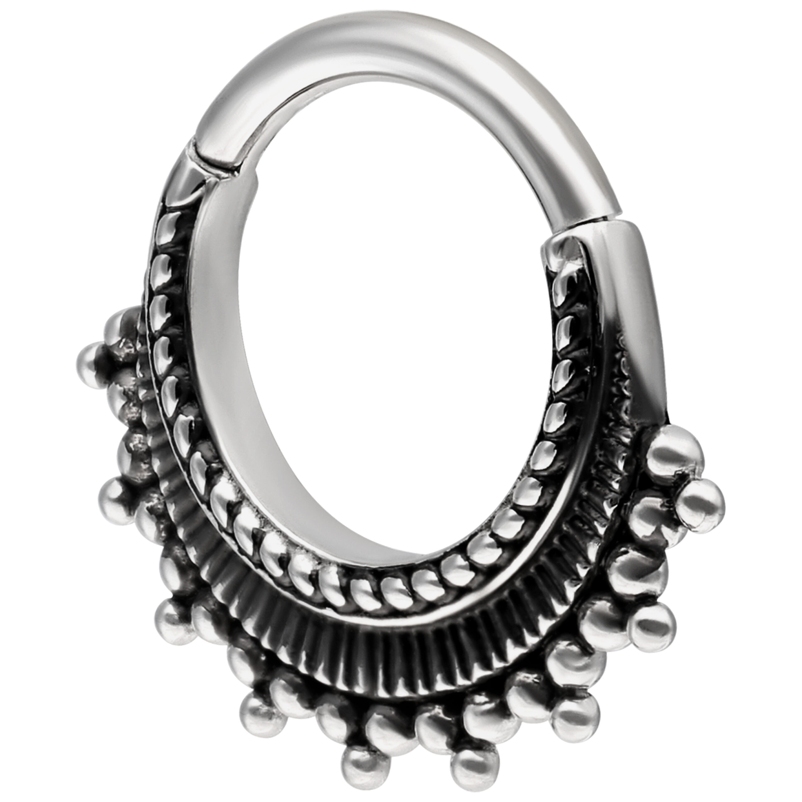 Our beautiful Native Hinged Clicker is made from high-quality stainless steel and is ideal for your septum or daith piercing. The piercing has a curved hinge bar, which makes it easy for you to insert the piercing – and all without any help!