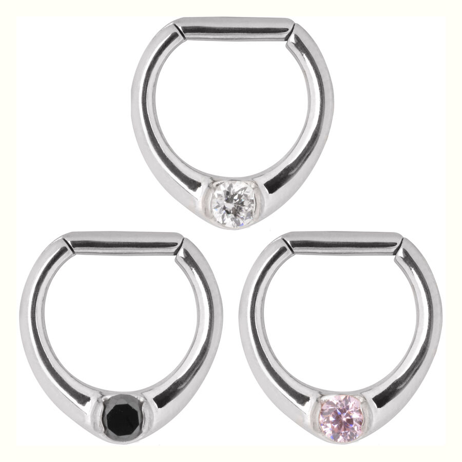 Our Jewelled Septum Clicker, made from premium silver stainless steel, is the perfect accessory for your septum piercing. Thanks to the straight hinge bar, it’s easy to insert and remove – no tools and no hassle.