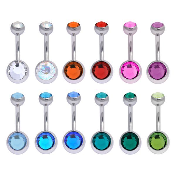 Titanium Highline® Internally Threaded Double Jeweled Bananabell The Titan Highline® Internally Threaded Double Jeweled Bananabell is available in lengths of 8.0, 10.0 and 12.0 mm including a large ball (8.0 mm) and a small ball (5.0 mm). Both balls are decorated with a noble crystal.