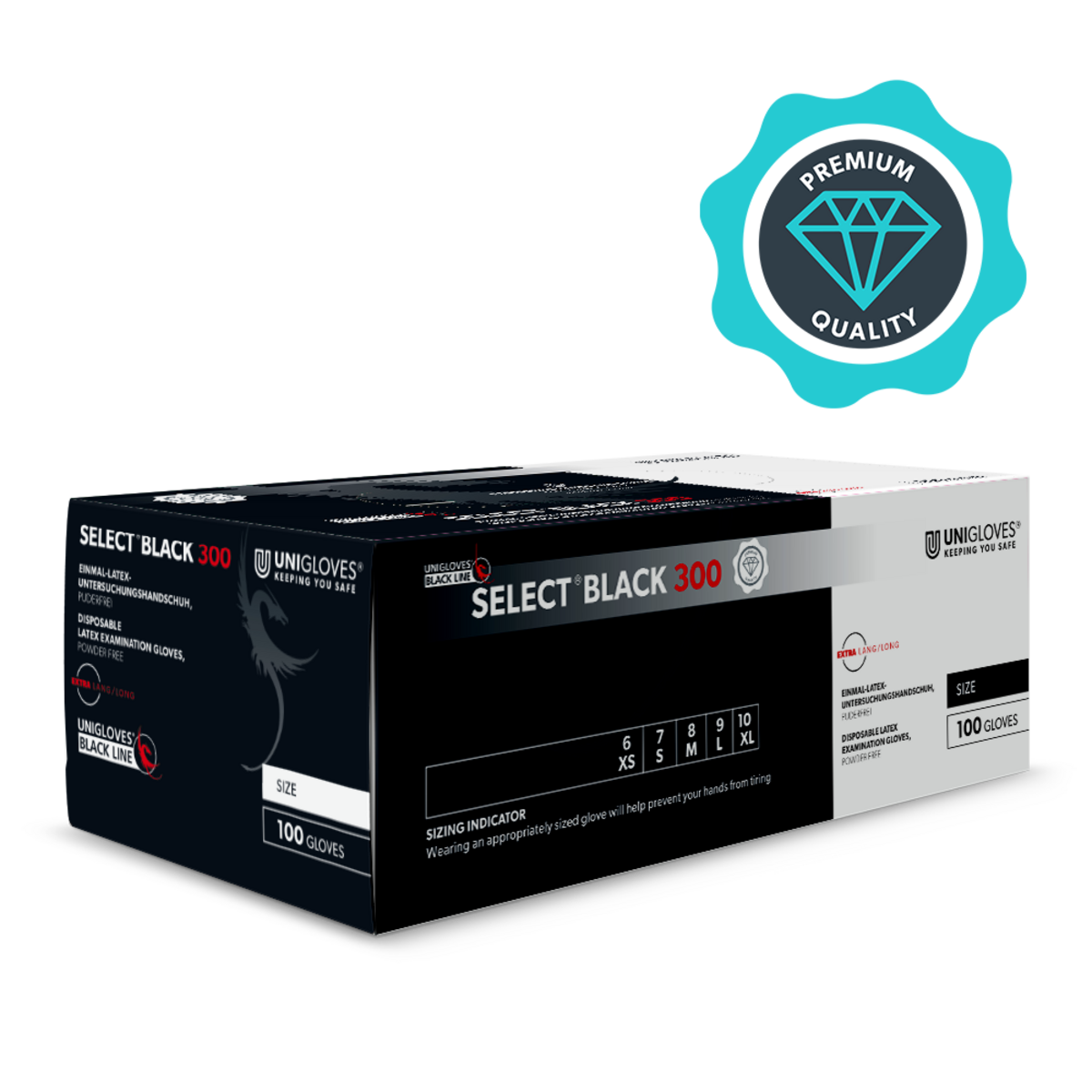 Selected black 300 extra long gloves made in latex.