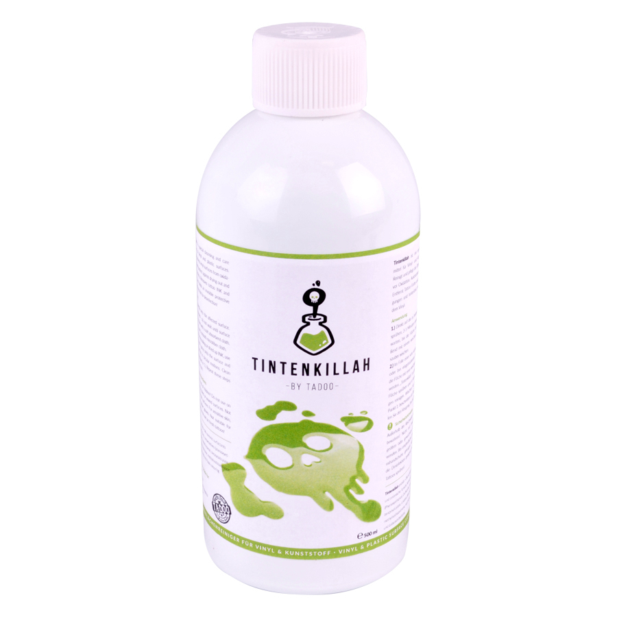 “Tintenkillah” is a special cleaning agent for vinyl and plastic surfaces. Cleans and nourishes the surface and protects against oxidation, dehydration and hardening. Removes tattoo paint and other impurities and leaves a protective film on the vinyl.